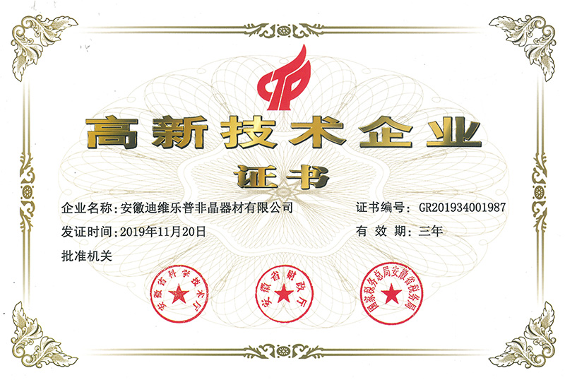 • 安徽迪維樂(lè)普非晶器材有限公司2019年安徽省“專精特新”中小企業(yè)名單的公示